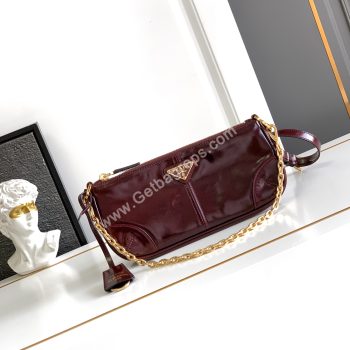 Prada 1BC221Re-Edition 2002 Medium Leather Shoulder Bag Dark Red